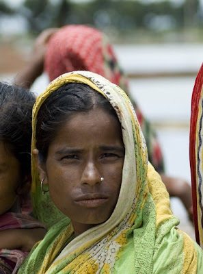 Farida (32) is from Modonkhali Village, Sadar upazila in Faridpur district. While waiting in line for her relief package she told us of how the floods affected her family. “The floods came in very quickly. When I had left home, my house was under three feet of water, my goat, hens and chickens died. I and my husband gathered our children (two daughters and two sons) and took refuge in a flood shelter on the road. All our assets are damaged and we have no means to buy food. This is the first relief we are receiving. I hope to return home after a month but I don’t know how I will cope and feed my children. I need support from NGOs to survive this disaster.”Photo: Amin Drik/Concern Aug 07.